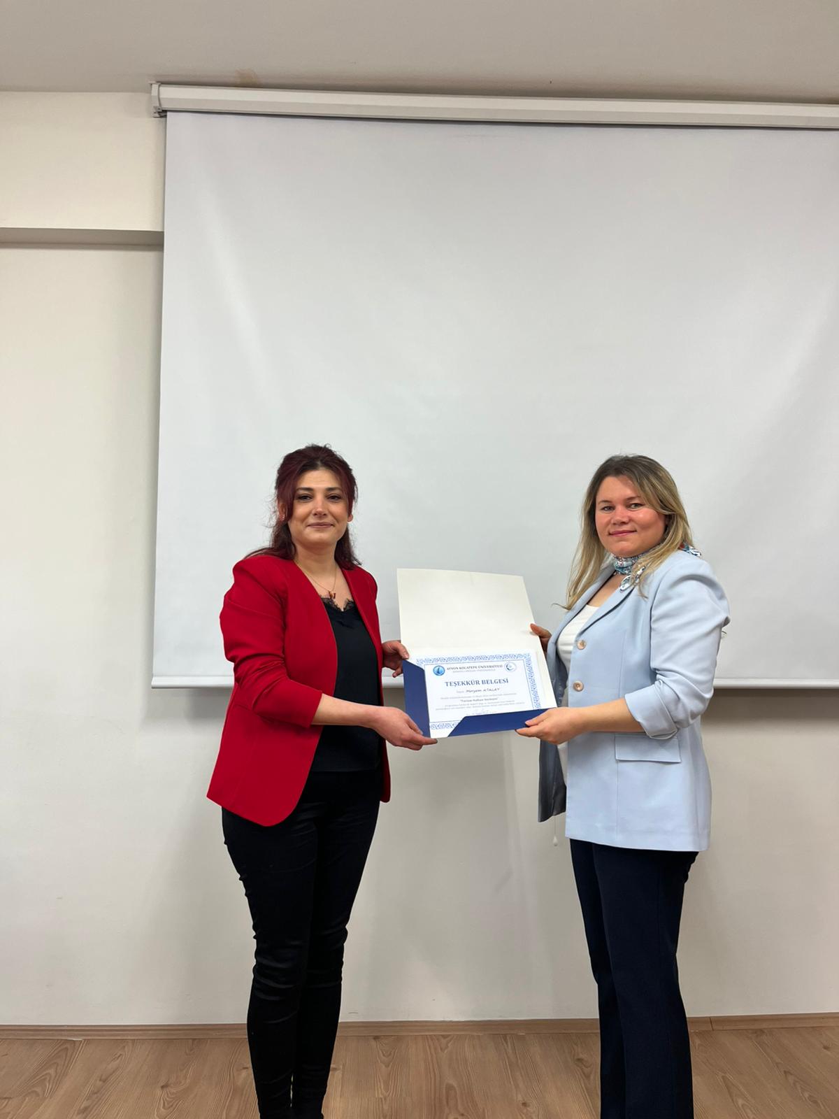 Etkinlik, Program konuğu Meryem ATALAY’a teşekkür belgesinin takdimi ve fotoğraf çekimiyle sona erdi.