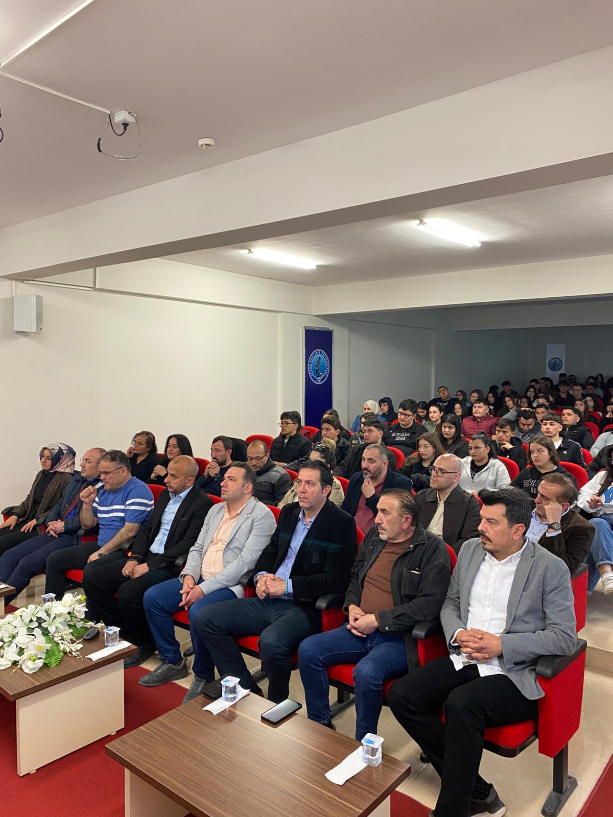 Etkinliği ikinci oturumunda konuşan SMYO Müdür Yardımcısı Öğretim Görevlisi Orhan Özdemir ise, yüksekokulun uygulamaya dayalı eğitim anlayışını ve sektörle kurduğu güçlü iş birliklerini vurguladı. Öğrencilerin yalnızca teorik bilgiyle değil, aynı zamanda sahada karşılaşacakları gerçek problemlere çözüm üretebilecek donanımla yetiştirildiğini ifade etti.